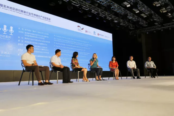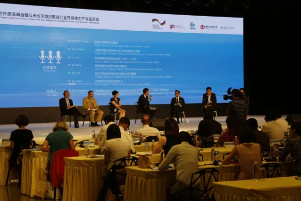 會議現(xiàn)場越南紡織服裝協(xié)會董事Pham Minh Huong女士、巴基斯坦襪業(yè)制造商與出口商協(xié)會副總協(xié)調(diào)師Junaid Makda先生、柬埔寨服裝制造商協(xié)會秘書長Ken Loo先生、緬甸服裝制造商協(xié)會聯(lián)合秘書長Sai Maung先生、孟加拉國成衣制造和出口商協(xié)會常務(wù)董事Miran Ali先生以及中國紡織工業(yè)聯(lián)合會副會長徐迎新先生共同探討本議題,德國國際合作機構(gòu)“亞洲紡織服裝行業(yè)社會與勞工標(biāo)準(zhǔn)”(SLSG)項目主任Marc Beckmann先生主持。