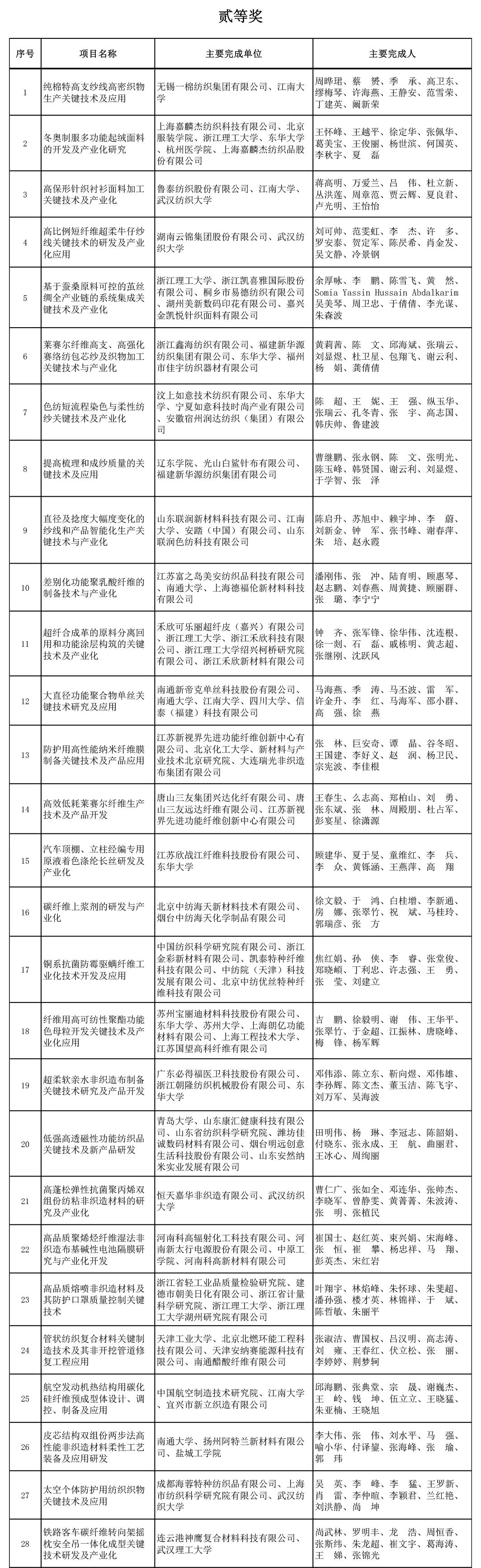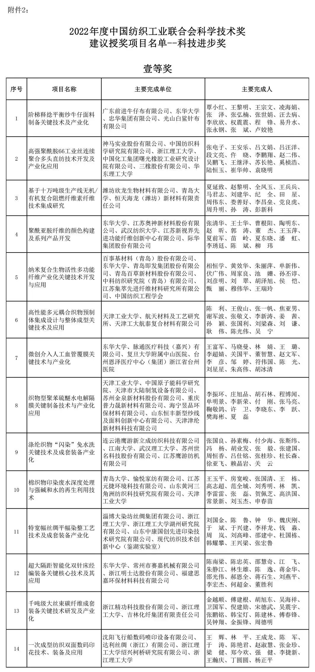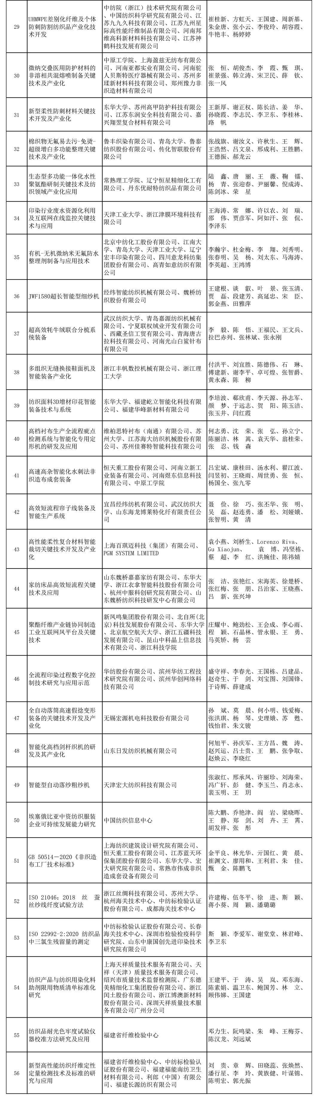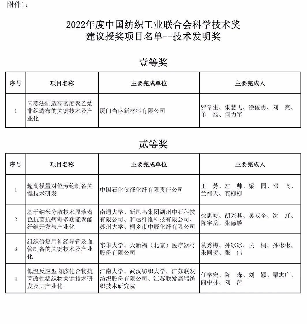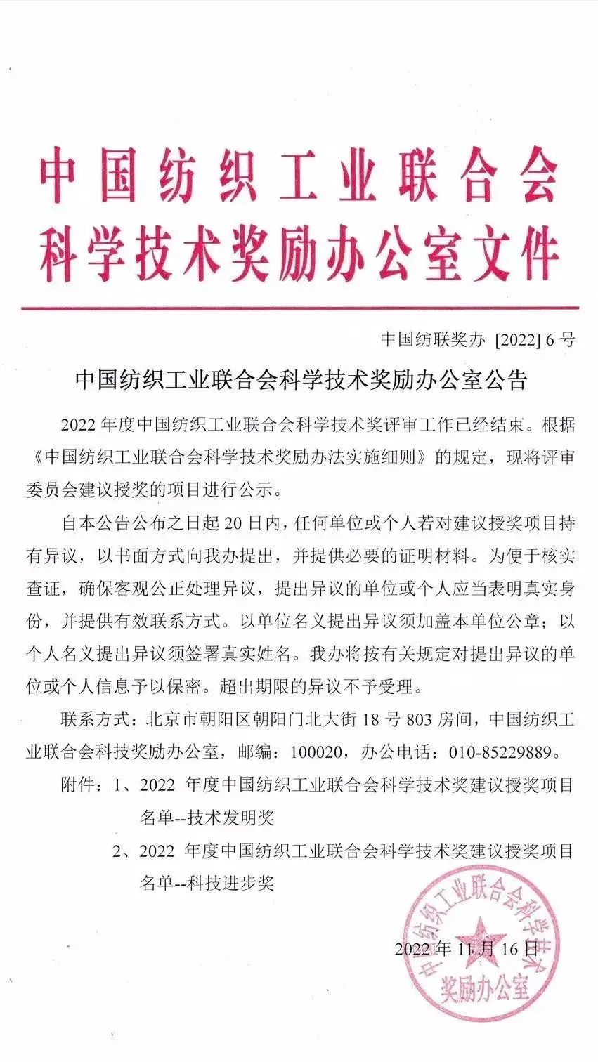 2022年中國紡織工業聯合會科學技術獎建議授獎項目公示
