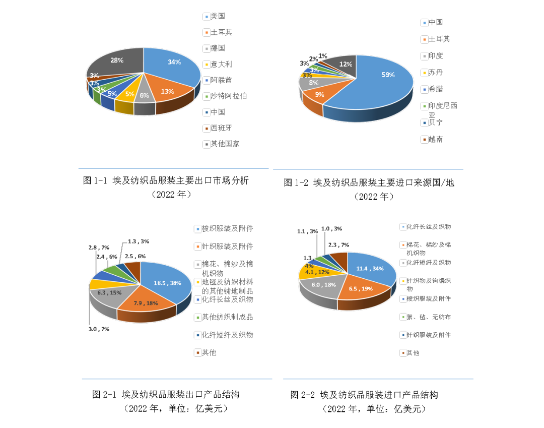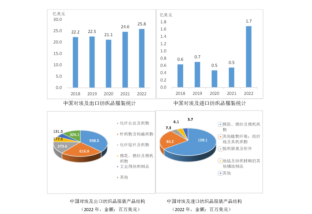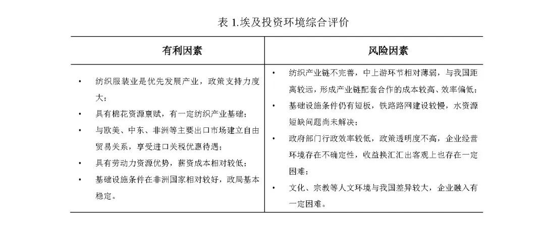 埃及政府自2017年以來(lái)健全法律體系,出臺(tái)、修訂了一系列關(guān)于改善投資環(huán)境的政策,并興建多個(gè)投資園區(qū)用以提高投資承載力。此外,埃及政府于2020年出臺(tái) “紡織業(yè)發(fā)展愿景 2025”計(jì)劃,不遺余力扶植和推動(dòng)紡織工業(yè)機(jī)械化發(fā)展,通過(guò)將紡織行業(yè)出口補(bǔ)貼由原來(lái)的9%提升到12%等優(yōu)惠政策吸引外資,促進(jìn)紡織業(yè)發(fā)展。