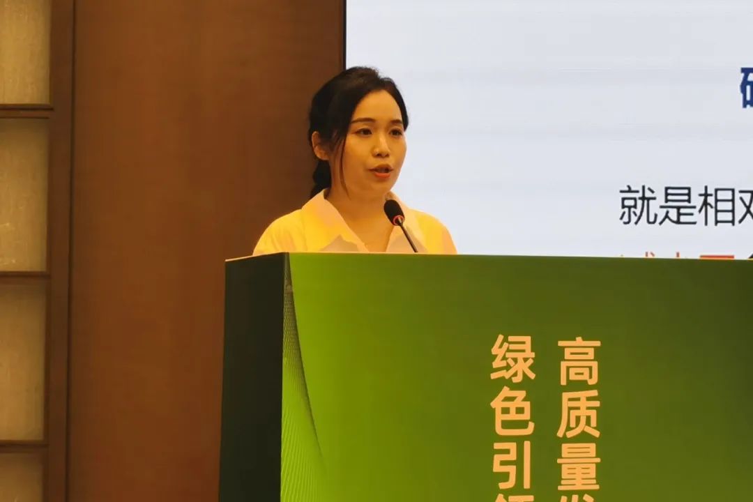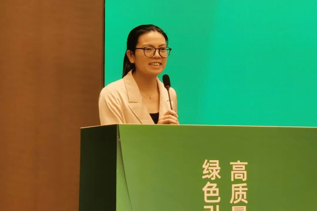 浙江海利環(huán)保科技股份有限公司營(yíng)銷總監(jiān)林靈玲在《循環(huán)經(jīng)濟(jì)中的綠色創(chuàng)新與可持續(xù)發(fā)展》報(bào)告中,圍繞綠色可持續(xù)發(fā)展和綠色纖維產(chǎn)品認(rèn)證在企業(yè)經(jīng)營(yíng)中的意義和應(yīng)用展開講解。