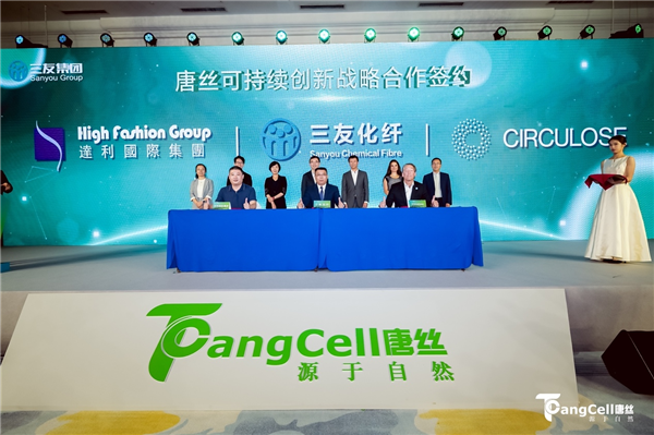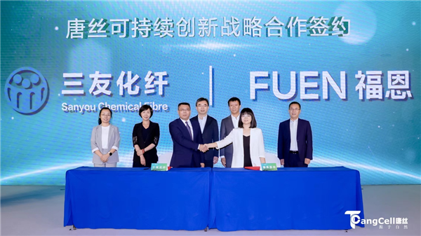 在本次發(fā)布會(huì)上,唐山三友化纖分別與達(dá)利、Circulose達(dá)成三方基于“可持續(xù)時(shí)尚”的戰(zhàn)略合作關(guān)系,將依托使用循環(huán)再生原料CIRCULOSE®生產(chǎn)的唐絲™循環(huán)再生纖維ReVisco™,共同推動(dòng)環(huán)保、減碳事業(yè)的發(fā)展。唐山三友化纖與福恩達(dá)成可持續(xù)戰(zhàn)略合作關(guān)系,將依托唐絲™環(huán)保彩纖和福恩色紡面料紛緯®的優(yōu)質(zhì)產(chǎn)品,共同推動(dòng)服裝產(chǎn)業(yè)的發(fā)展和綠色環(huán)保事業(yè)的進(jìn)步。