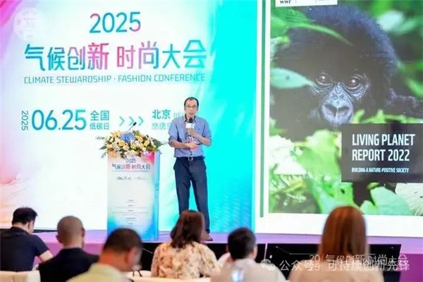 在主題一“價值鏈:時尚產業氣候創新路徑”部分, 世界自然基金會(瑞士)北京代表處上海區域項目主任任文偉分享了其在紡織行業綠色轉型的戰略與實踐。他在分享中指出,紡織行業作為全球供應鏈最復雜的行業之一,從設計、原料到消費、回收的全鏈條均蘊藏巨大減碳空間。WWF通過開發涵蓋評估、供應鏈分析、戰略結合及政策披露的完整工具體系,已與安踏集團等品牌合作推動綠色轉型。例如,與安踏集團的合作包括共同致力于落實聯合國2030可持續發展目標(SDGs),推動紡織行業可持續發展、生物多樣性保護與公眾傳播等領域的工作。此外,雙方還利用水管理創新方法,對供應鏈進行水風險綜合評估,提高供應鏈應對水風險的韌性,助力產業鏈上下游推進綠色轉型。他強調,全球氣候變化與生物多樣性喪失兩大挑戰緊密關聯,需借助綠色生產與消費的協同作用,促使行業實現從‘綠色’到‘精益’的轉型升級。