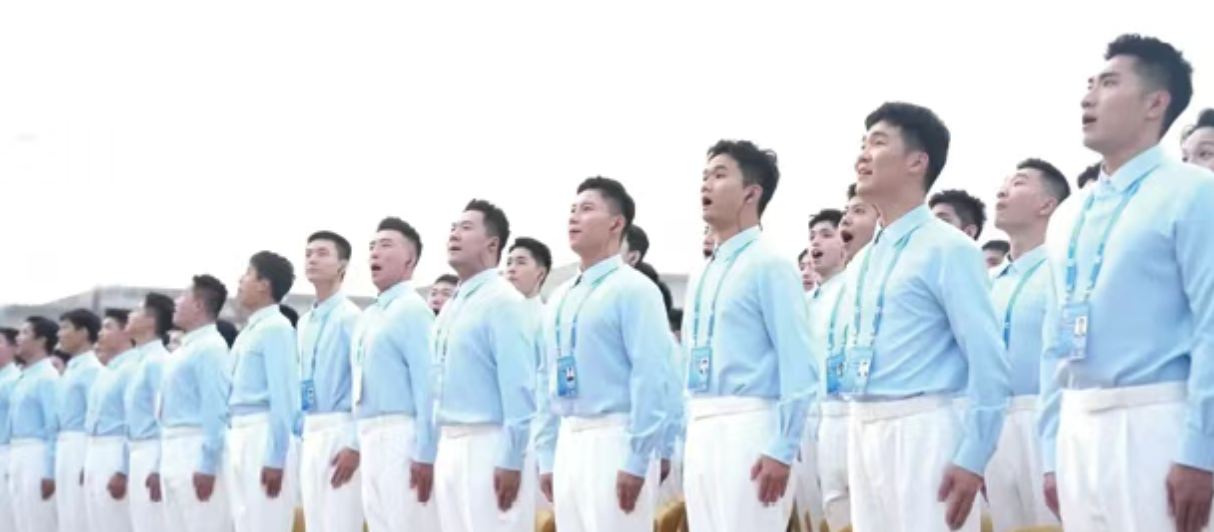 當受閱官兵邁著鏗鏘正步走過長安街,那支撐正步的閱兵靴,是際華集團車間里經千次調試的“科技戰靴”;空中護旗梯隊護衛的“中國紅”旗幟,凝結著邦維團隊無數次比對試驗的匠心;高校合唱團的“鐵血灰藍”演出服,則是北京服裝學院設計師57天打磨近500款方案的成果……