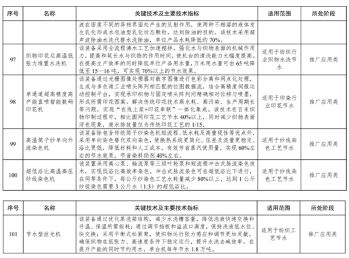 日前,工業和信息化部、水利部發布了《國家鼓勵的工業節水工藝、技術和裝備目錄(2025年版)》,共有150項涉及鋼鐵、石化、紡織印染等十余個行業,其中,紡織行業14項。