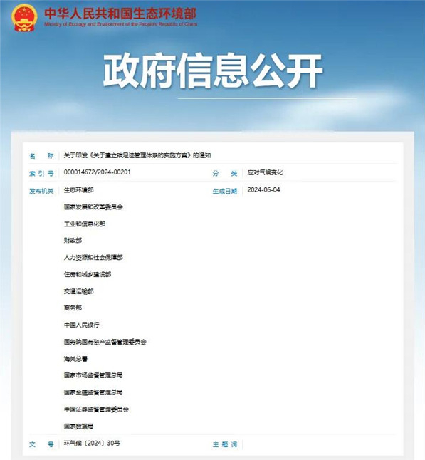 十五部門聯合印發《關于建立碳足跡管理體系的實施方案》