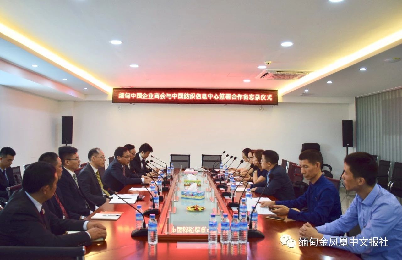 10月17日,緬甸中國(guó)企業(yè)商會(huì)與中國(guó)紡織信息中心在仰光簽署合作備忘錄,并就進(jìn)一步加強(qiáng)交流合作,更好推進(jìn)在緬中資企業(yè)落地發(fā)展交換了意見。