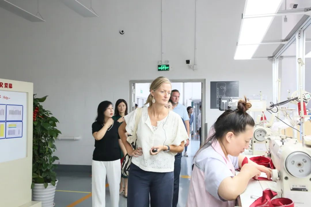 愛慕時尚工廠總經(jīng)理關(guān)春紅女士帶領(lǐng)到訪人員逐一參觀了愛慕時尚工廠內(nèi)的愛慕書屋、愛慕博物館、愛慕工坊、母嬰室、全自動裁剪車間、立式生產(chǎn)車間等生產(chǎn)和文化設(shè)施,并從產(chǎn)品制造、技術(shù)研發(fā)、物流配送、企業(yè)文化發(fā)展和傳統(tǒng)文化的應(yīng)用與傳承等維度進(jìn)行了詳細(xì)介紹,使聯(lián)合國兒基會參訪人員對中國紡織服裝行業(yè)和蘇繡等傳統(tǒng)文化有了更加全面和深入的了解。
