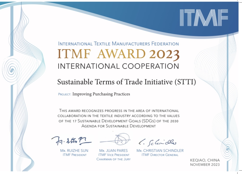 | 可持續貿易條款倡議項目“可持續貿易條款倡議”榮獲國際紡聯2023年度國際合作獎 |
