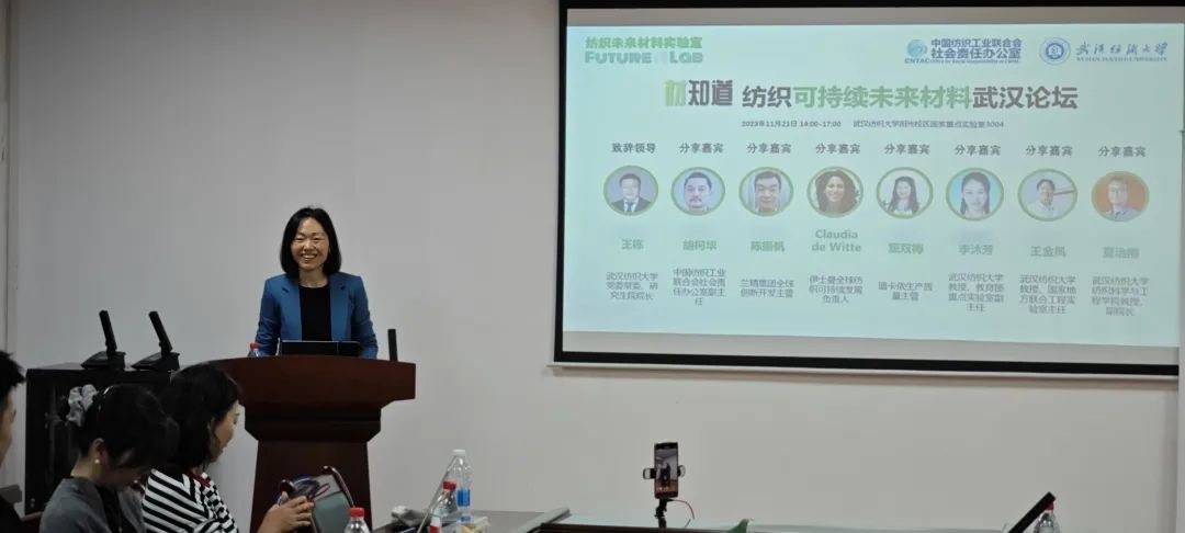為此,中國(guó)紡織工業(yè)聯(lián)合會(huì)社會(huì)責(zé)任辦公室、中國(guó)紡織信息中心在蘭精集團(tuán)和伊士曼集團(tuán)的支持下開(kāi)展調(diào)研和交流活動(dòng),2023年11月21日在武漢紡織大學(xué)舉辦學(xué)術(shù)研討會(huì),研討主題“紡織行業(yè)可持續(xù)未來(lái)材料”。重點(diǎn)圍繞綠色可持續(xù)紡織材料的發(fā)展方向,預(yù)測(cè)未來(lái)(10年以后)紡織領(lǐng)域中具備大規(guī)模產(chǎn)業(yè)化應(yīng)用前景的可持續(xù)材料,該類材料對(duì)生態(tài)、生物以及環(huán)境的負(fù)面影響可降低到最小化,并從綠色、時(shí)尚與科技三個(gè)維度同步對(duì)該類材料展開(kāi)熱烈討論。