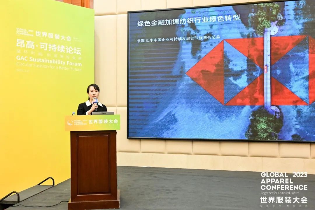 在《綠色金融,加快紡織行業綠色轉型》的主題分享中,匯豐銀行(中國)有限公司可持續發展部氣候事務總監袁圓指出,匯豐集團的目標是力爭在2050年實現“零碳”融資和投資組合,協助客戶實現投資組合多元化和綠色轉型,對于紡織行業來說,最主流的是與綠色、可持續發展目標相關的金融產品。她指出,匯豐將在充分理解企業轉型的現實條件和挑戰的基礎上,根據自身的減排目標、加速轉型可能帶來的風險以及對企業信用的影響等因素,幫助企業設定與科學減排路徑相一致的預期目標。匯豐集團期待通過未來能夠和更多的紡織服裝行業的伙伴合作推廣,以綠色金融之力助推產業經濟高質量發展。