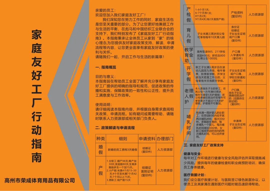 在FFF試點項目推行過程中,企業對員工的家庭需求更加地清晰立體化,特別特別編制了《家庭友好工廠行動指南》。該指南面向員工,詳細介紹了友好家庭相關的政策解讀、申請流程、政策支持等內容,幫助員工全面了解并充分享有家庭友好工廠行動中涉及的各項權益,推進FFF政策的高效傳播與實施。