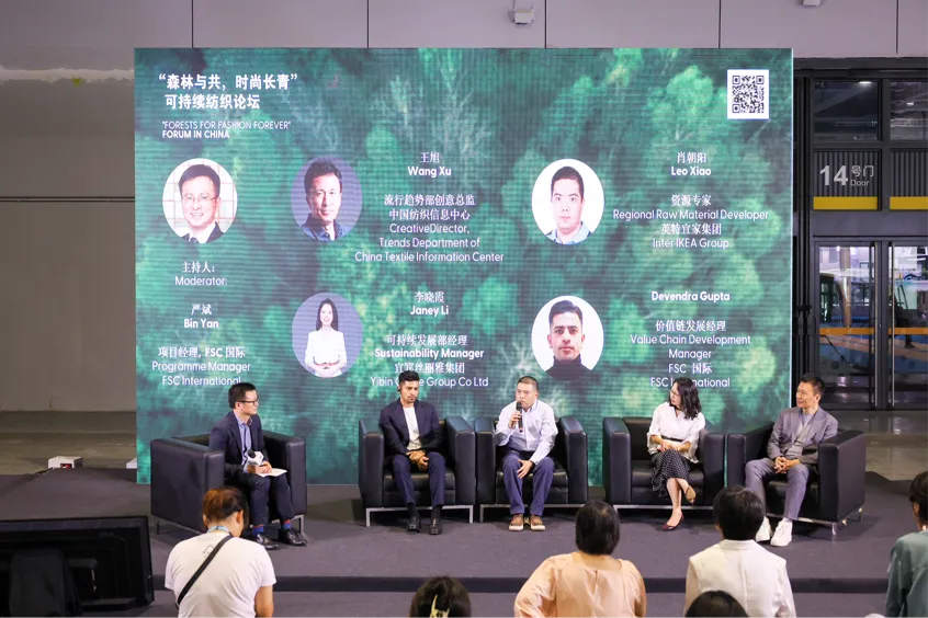 如何擴大林基纖維在紡織行業的應用范圍?如何在追求時尚的同時實現森林資源的可持續發展?如何通過推動紡織材料的循環利用及降低生產過程中的可持續影響?如何促進全產業鏈上下游伙伴合力提高行業“含綠量”?在先鋒對話環節,FSC國際項目經理嚴斌與中國紡織信息中心流行趨勢部創意總監王旭、宜賓絲麗雅集團有限公司可持續發展部經理李曉霞、英特宜家集團東亞區資源管理部門資源專家肖朝陽、FSC國際價值鏈發展經理Devendra Gupta等嘉賓分享最新研究成果和實踐經驗,激發創新思維,推動更多環保理念和技術在產業鏈各環節落地生花。