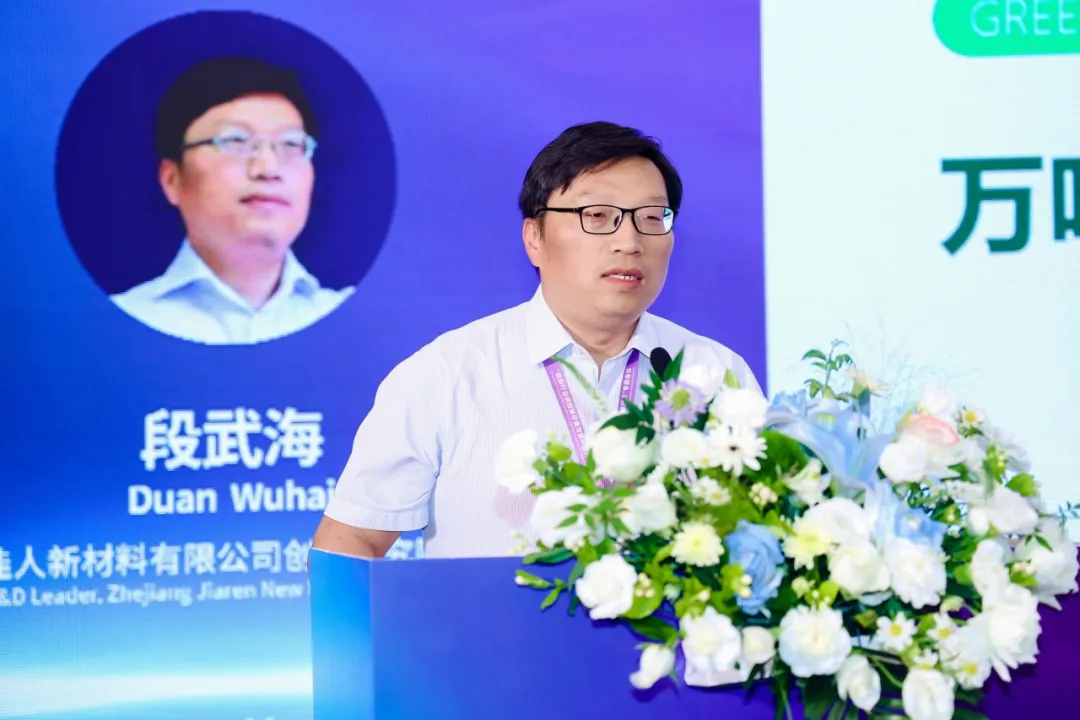 “塑料污染、氣候變化、生物多樣性是全球三大公共環(huán)境問題。在紡織行業(yè),材料化利用率不足3%,廢舊紡織品的循環(huán)再生市場潛力巨大。”浙江佳人新材料有限公司創(chuàng)新研究院負責人段武海以《萬噸級廢舊紡織品高值化應用 助力低碳發(fā)展》為題,結合企業(yè)發(fā)展進行了分享。他介紹,佳人采用分子級循環(huán)再生技術不僅實現(xiàn)了廢舊聚酯再生高值化應用,與原生材料相比,還可實現(xiàn)60%-70%碳減排。目前佳人已實現(xiàn)首家化學法再生萬噸級量產(chǎn),并在國內首推“T2T”循環(huán),以此來更大程度地阻止新的化石能源進入供應鏈。