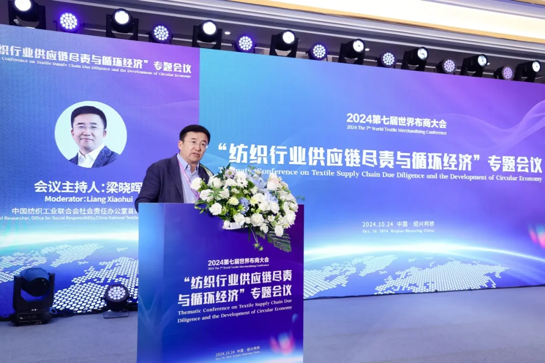 中國紡織工業(yè)聯(lián)合會社會責任辦公室首席研究員梁曉暉主持會議。他表示,循環(huán)經(jīng)濟拓展了紡織服裝行業(yè)的供應鏈,從前道的原材料、生產(chǎn)端到中道的流通端以及到后道的消費端都發(fā)生了從業(yè)者與合作形態(tài)的各種變化,這也為紡織服裝行業(yè)推動更加負責任、可持續(xù)的循環(huán)經(jīng)濟帶來新的機遇和挑戰(zhàn)。