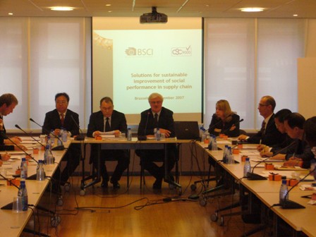 2007年11月28日-12月7日,應歐洲外貿協會(FTA)等機構和公司的邀請,孫瑞哲副會長率中國紡織工業協會社會責任代表團赴歐洲進行了為期10天的工作訪問。代表團成員來自中國紡織企業社會責任管理體系CSC9000T試點產