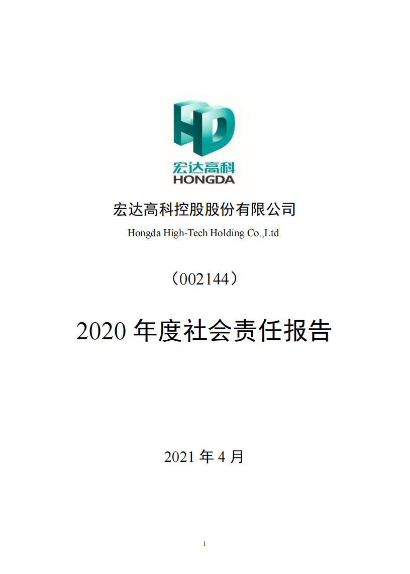 宏達(dá)高科控股股份有限公司2020年度社會責(zé)任報告